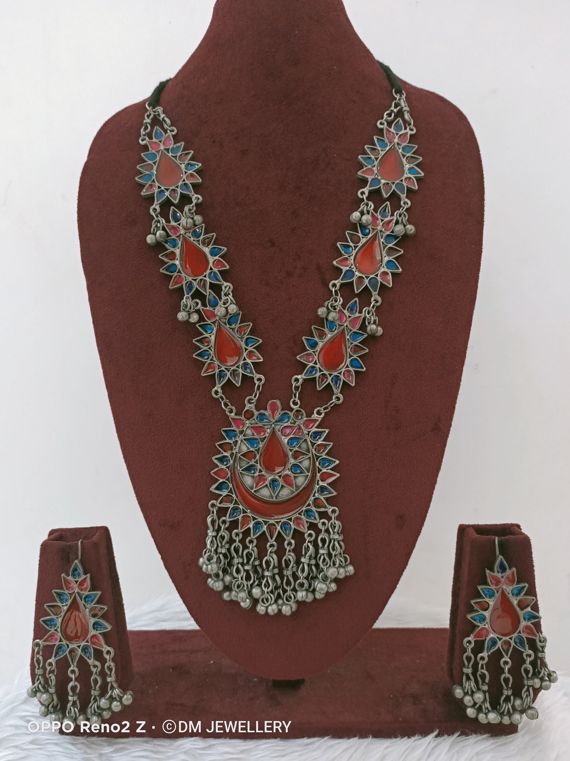 Embrace The Beauty Of Traditional Craftsmanship With This Exquisite Antique-Finish Tribal Afghani Necklace Set With Earrings.....