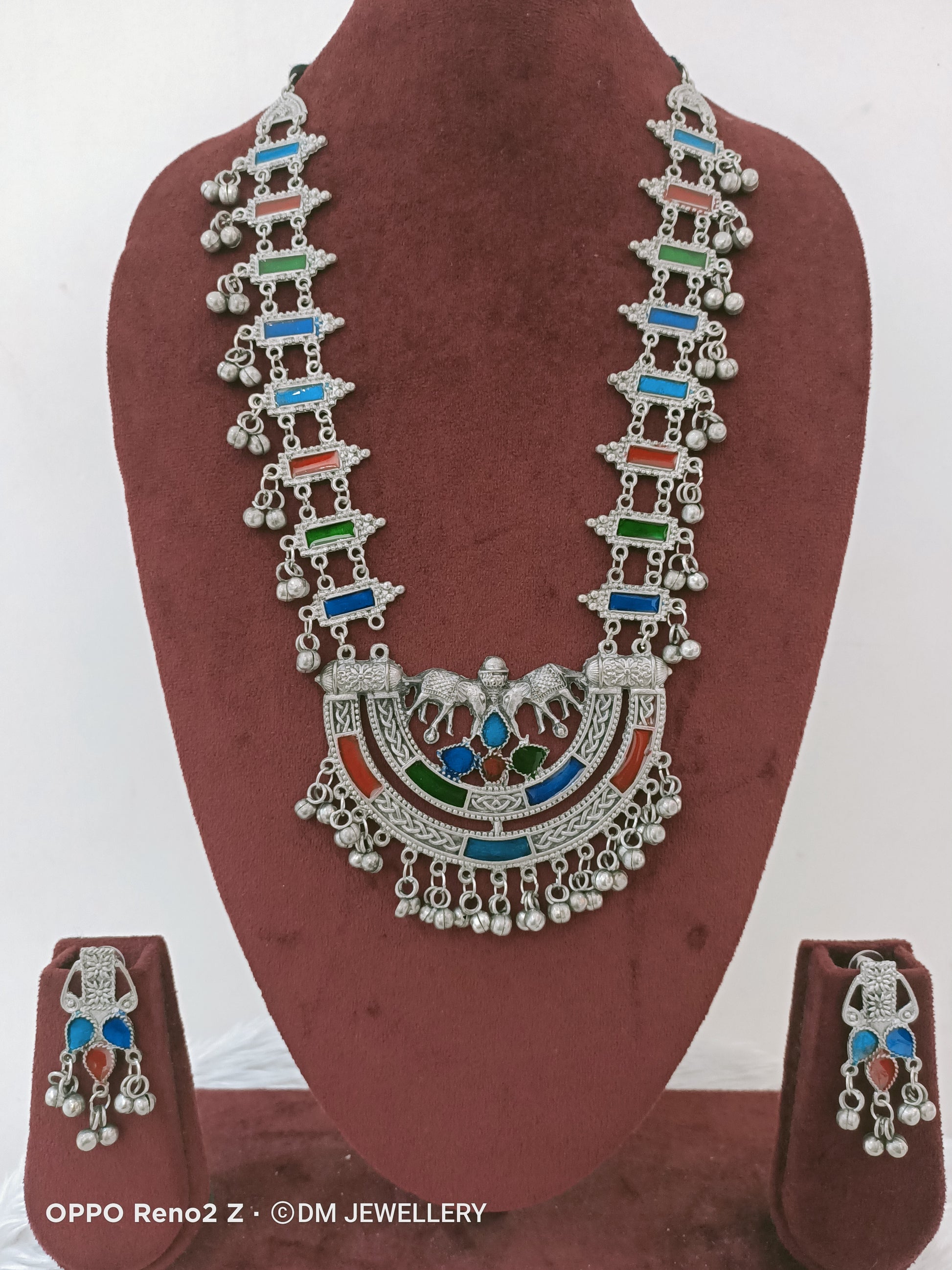Embrace The Beauty Of Traditional Craftsmanship With This Exquisite Antique-Finish Tribal Afghani Necklace Set With Earrings.....