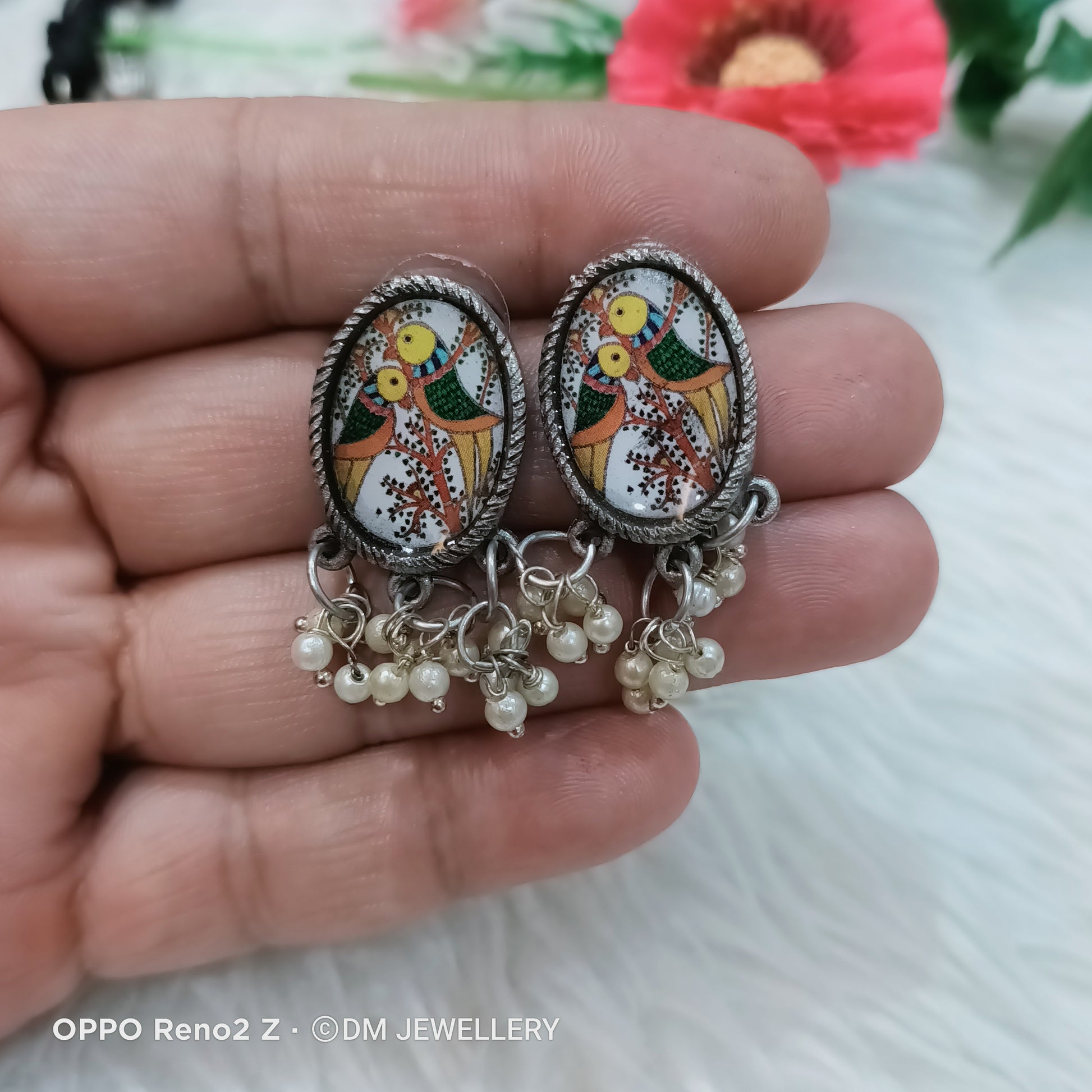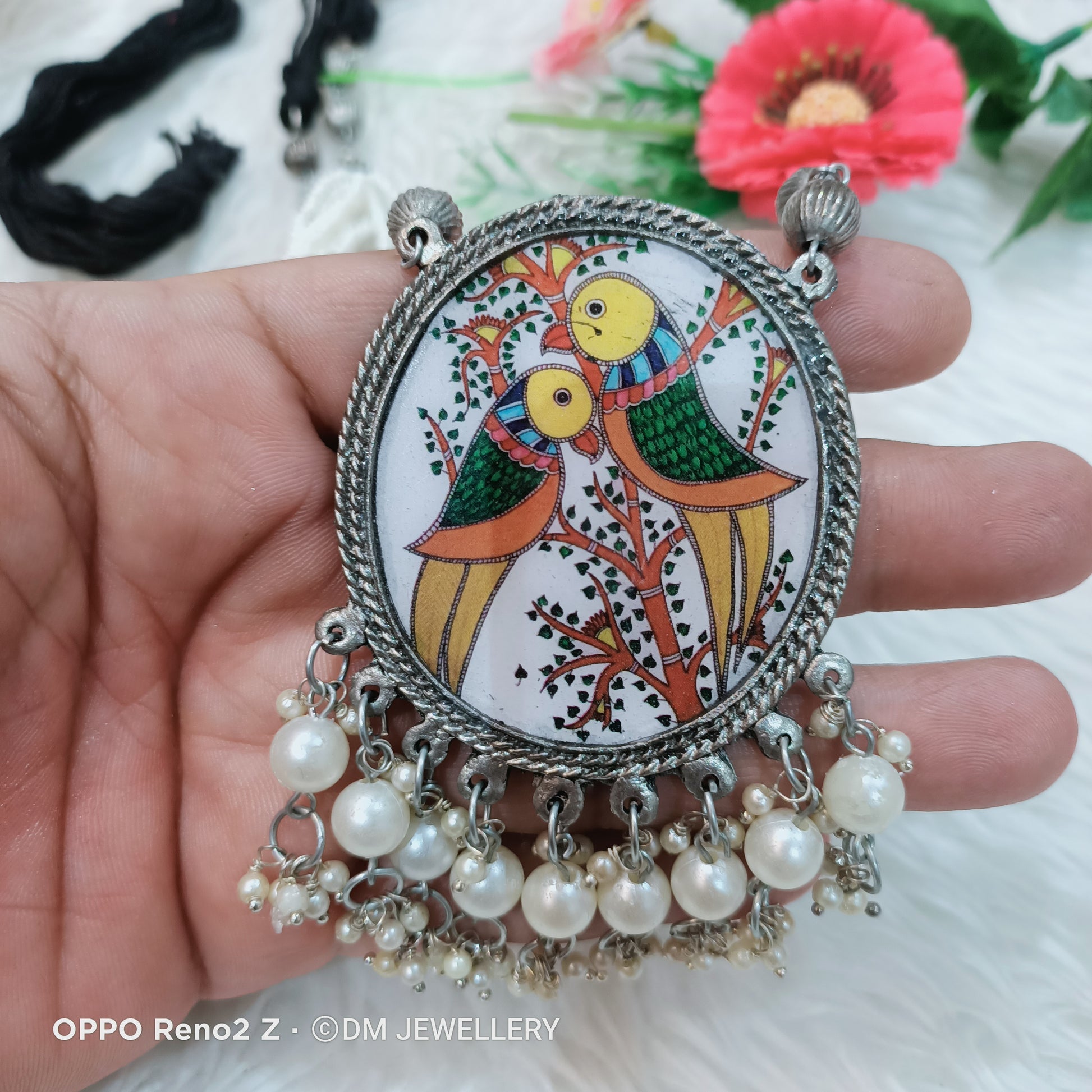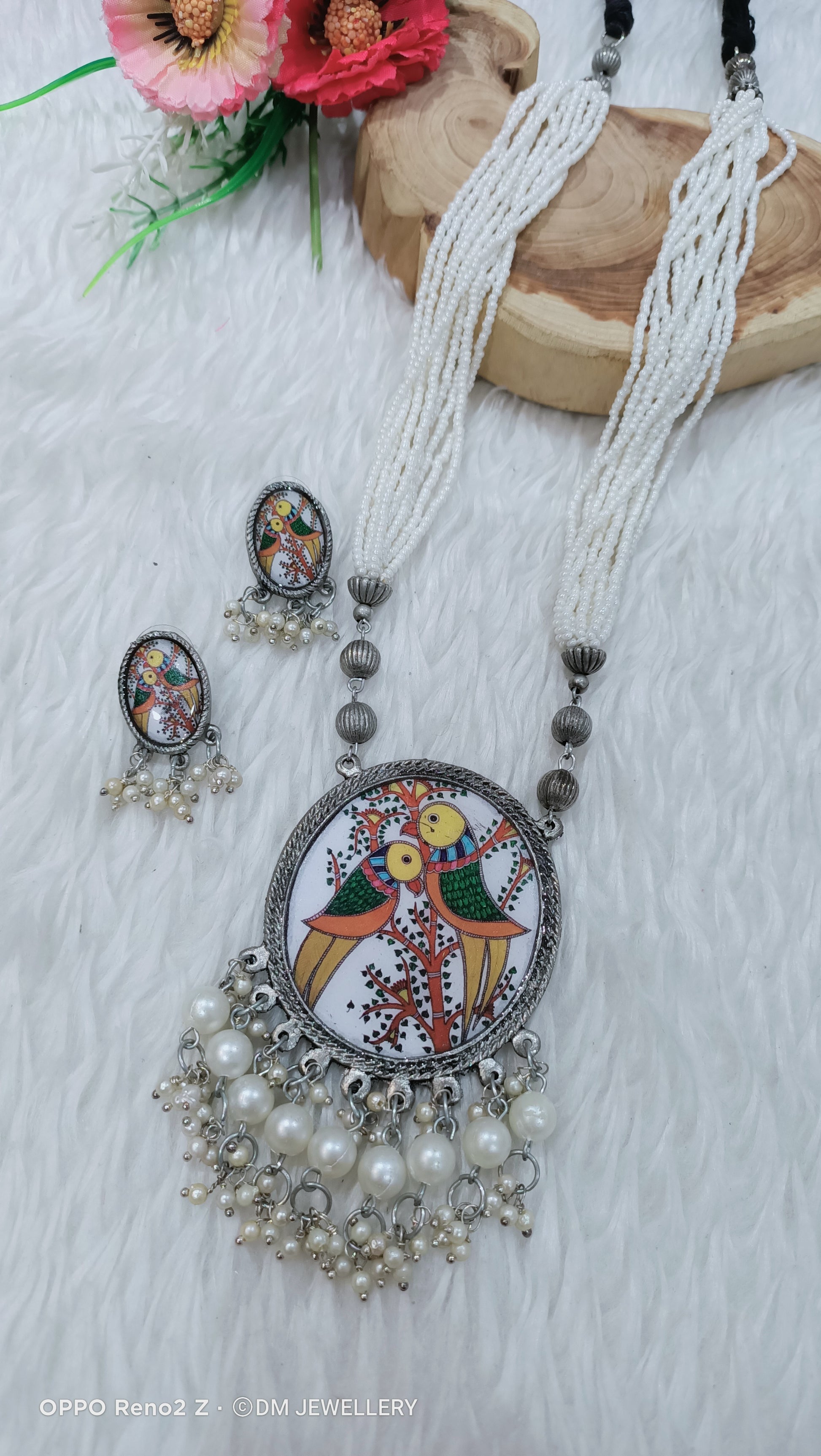 Premium Quality Traditional Ethnic Fashion Silver Oxidised Pearl Necklace With Earrings Adjustable Thread Jewellery Set....