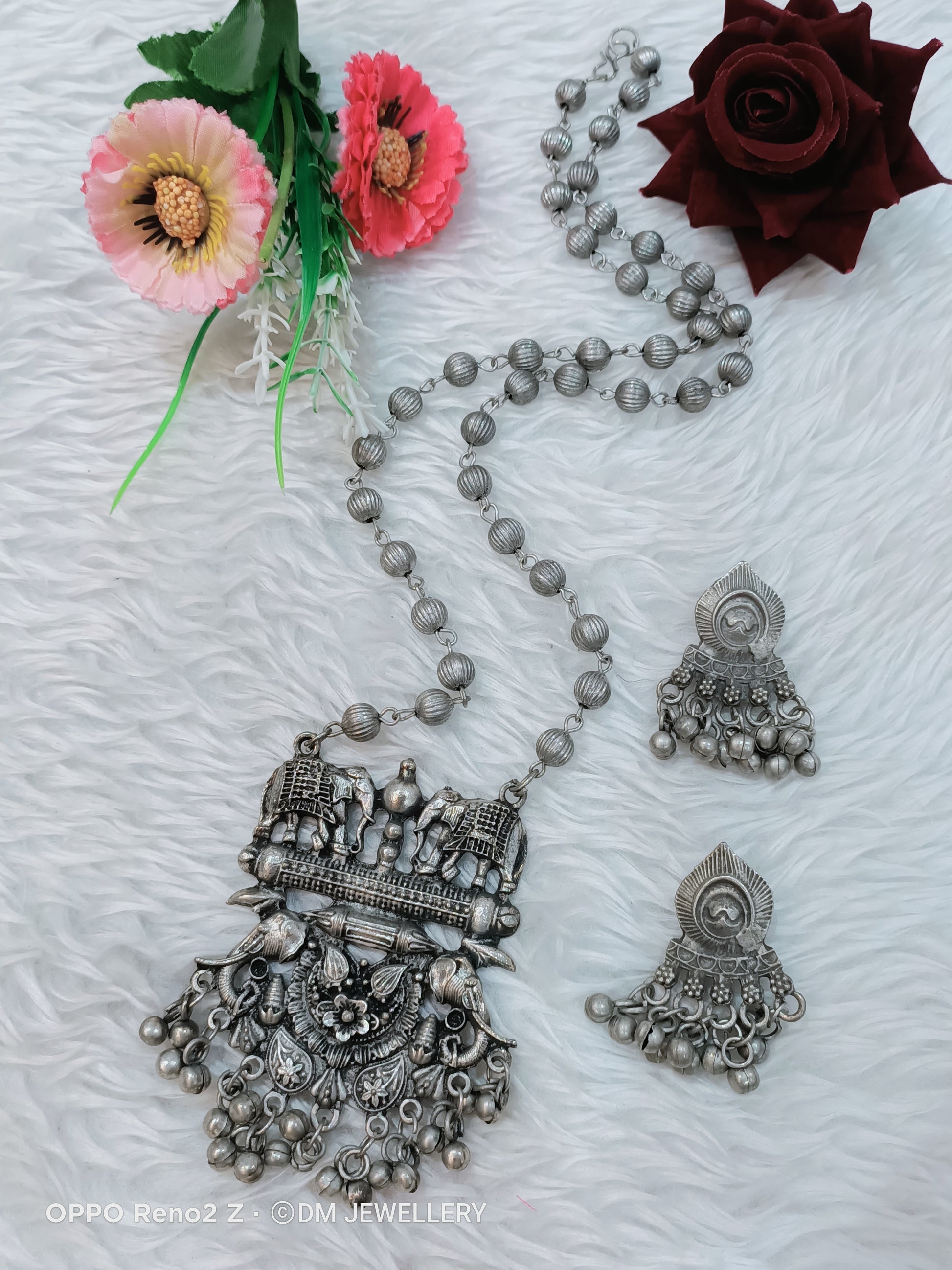 Ethnic Traditional Ghungroo Fashion SIlver Oxidised German Silver Long Necklace With Earrings Jewellery Set......