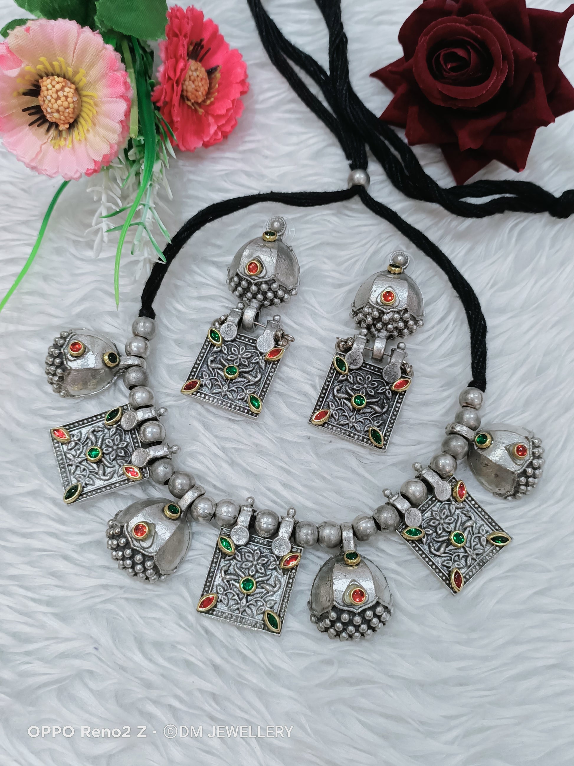 Ethnic Traditional Fashion SIlver Oxidised German Silver Choker Necklace With Earrings Jewellery Set......