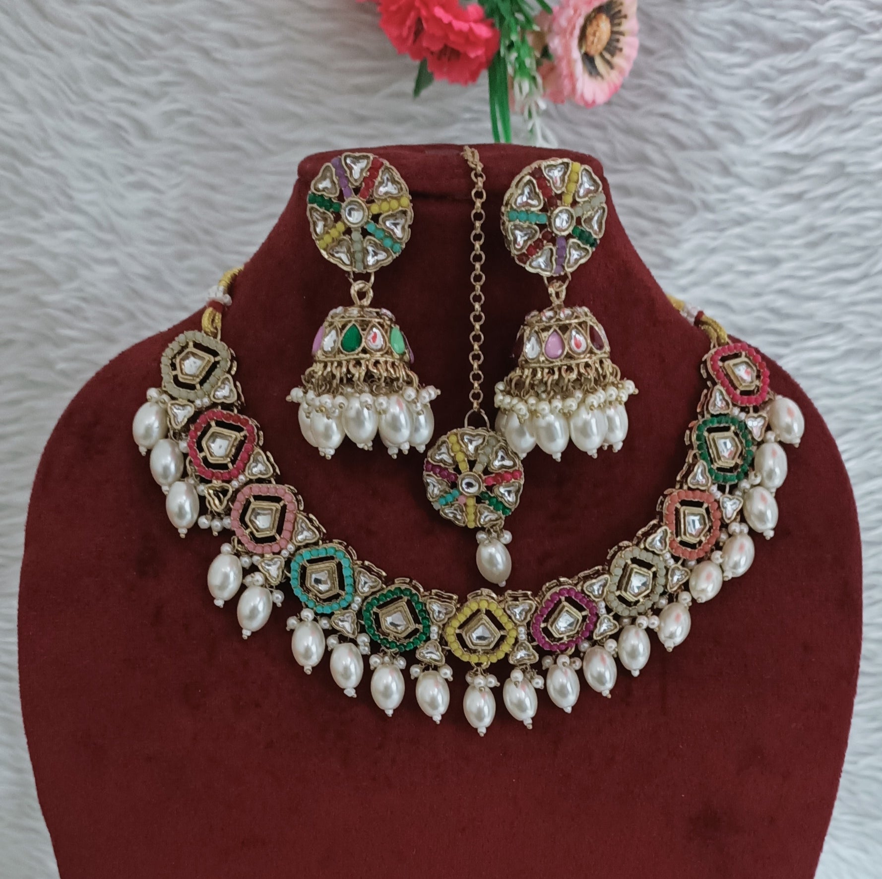Premium quality chokkor set with jhumka earings n mang tikka....
