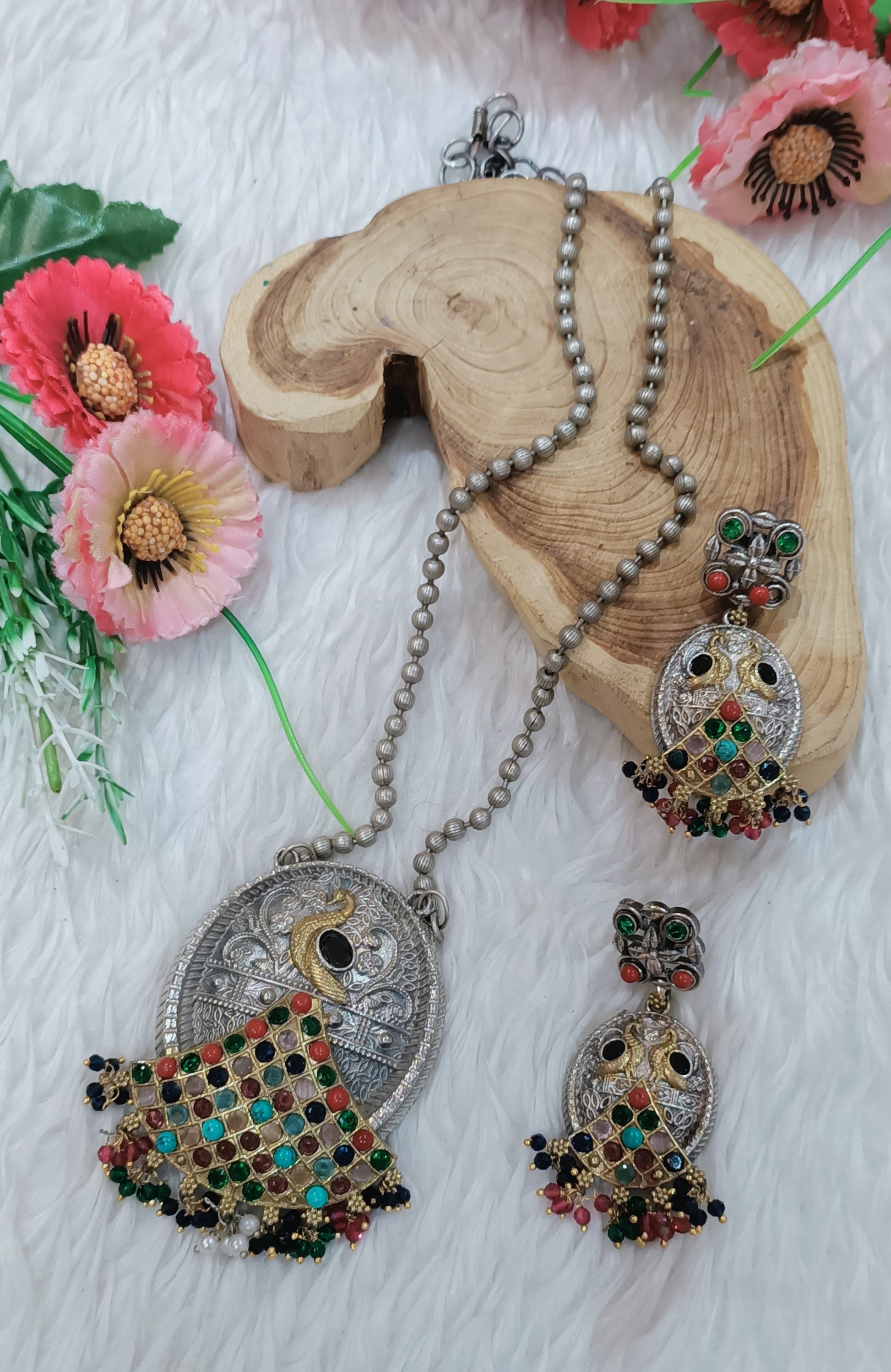 Statement Ethnic Antique Fashion German Silver Oxidised Traditional Necklace With Earrings.......