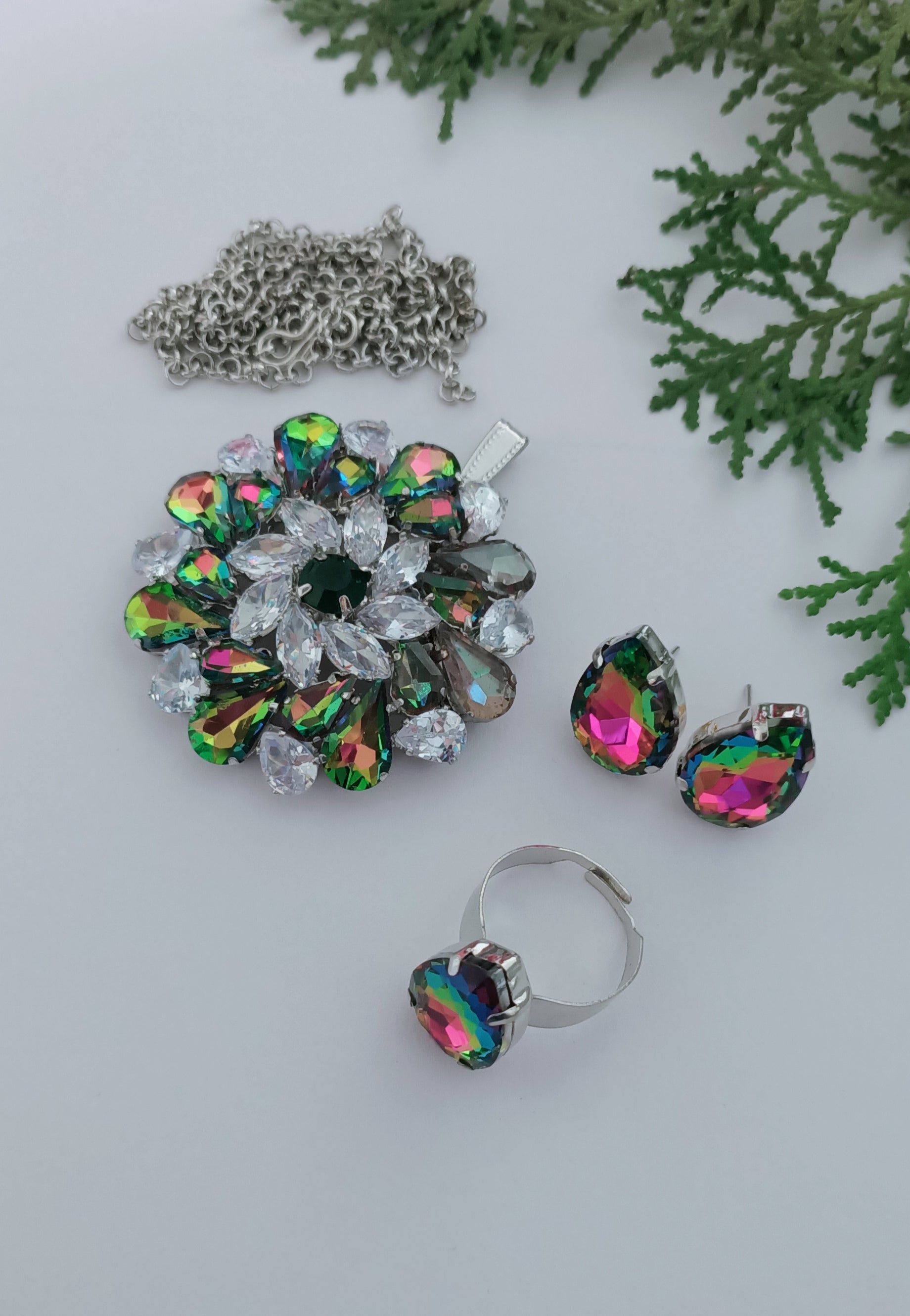 Premium Quality Pandant Chain Korean Diamon Set With Stud N Finger Ring