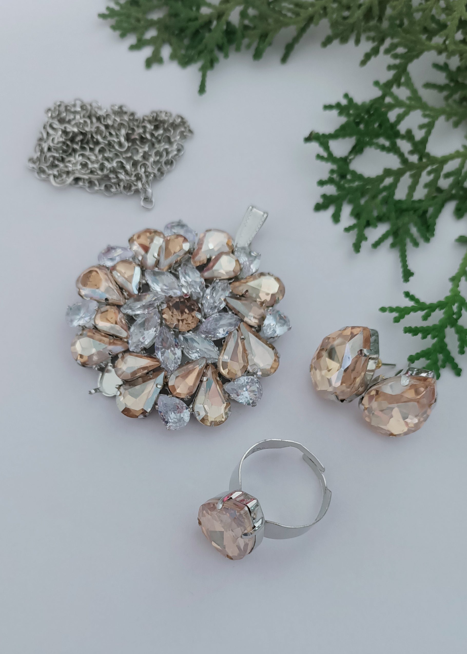 Premium Quality Pandant Chain Korean Diamon Set With Stud N Finger Ring..