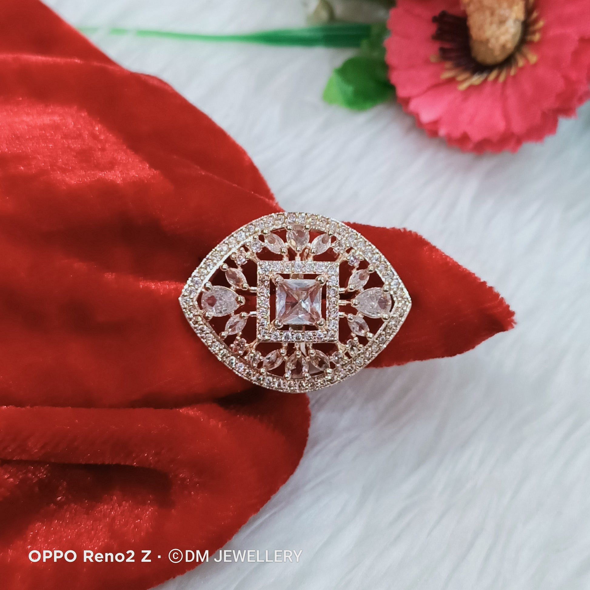 Ad Diamond Adjustable Finger Ring Rose Gold polish