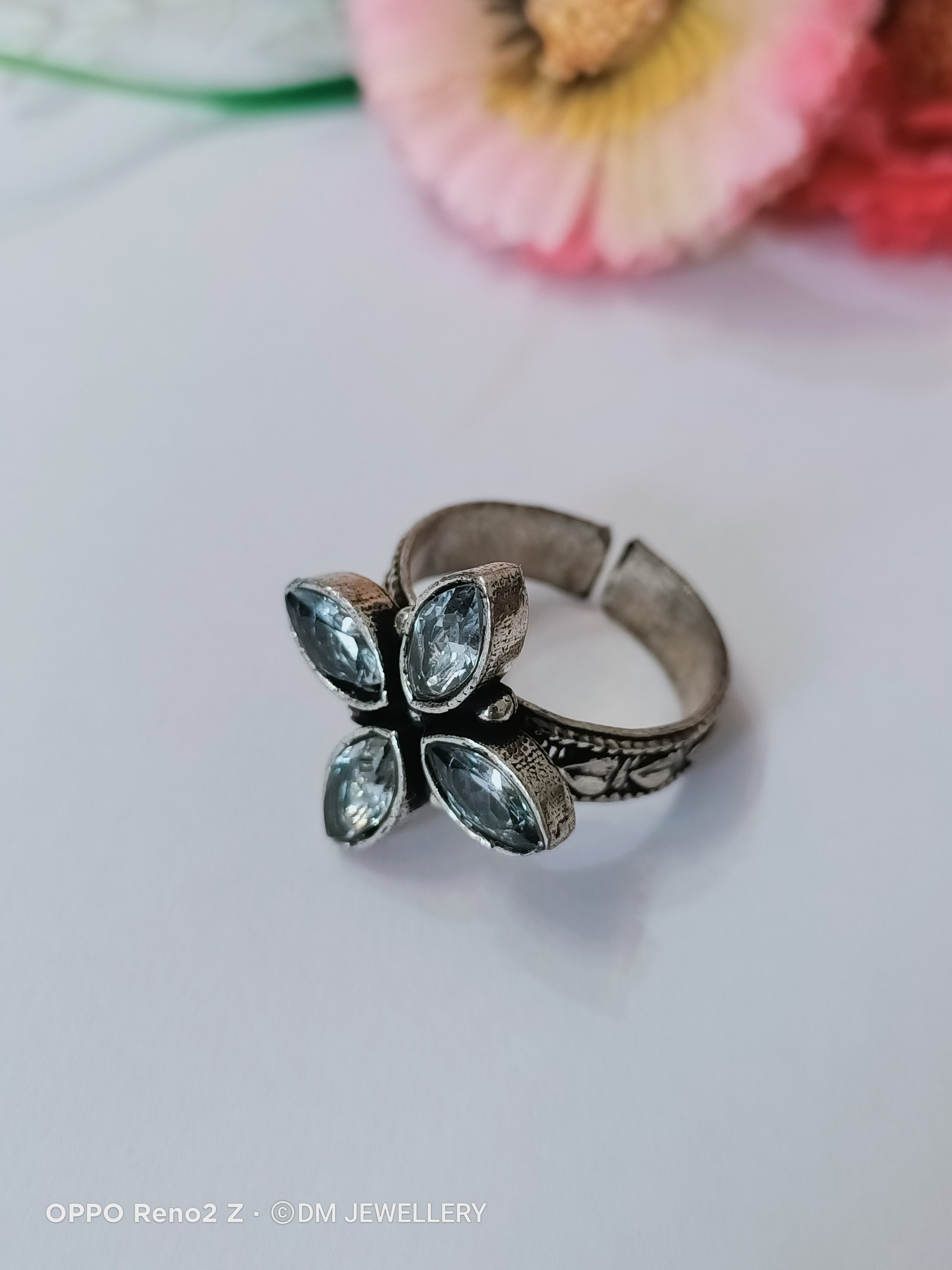 Adjustable oxidised White stone Ring