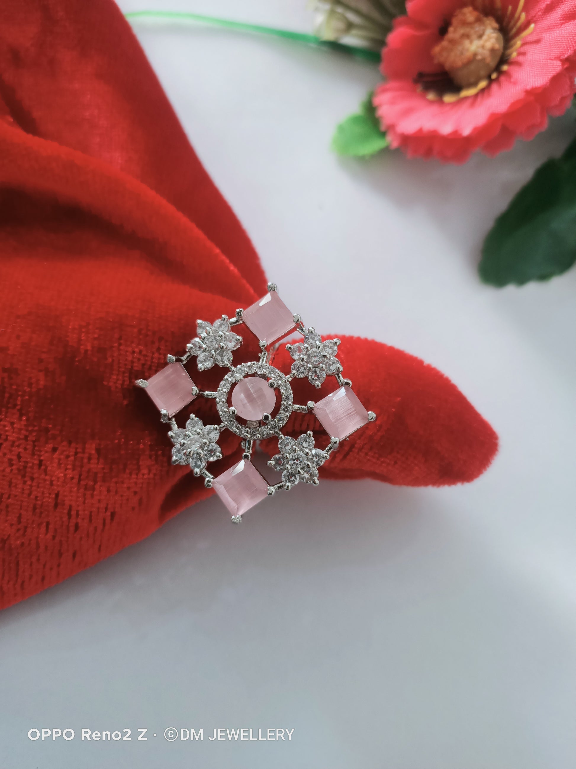 Ad Diamond Adjustable Finger Ring with light pink monalisa stone